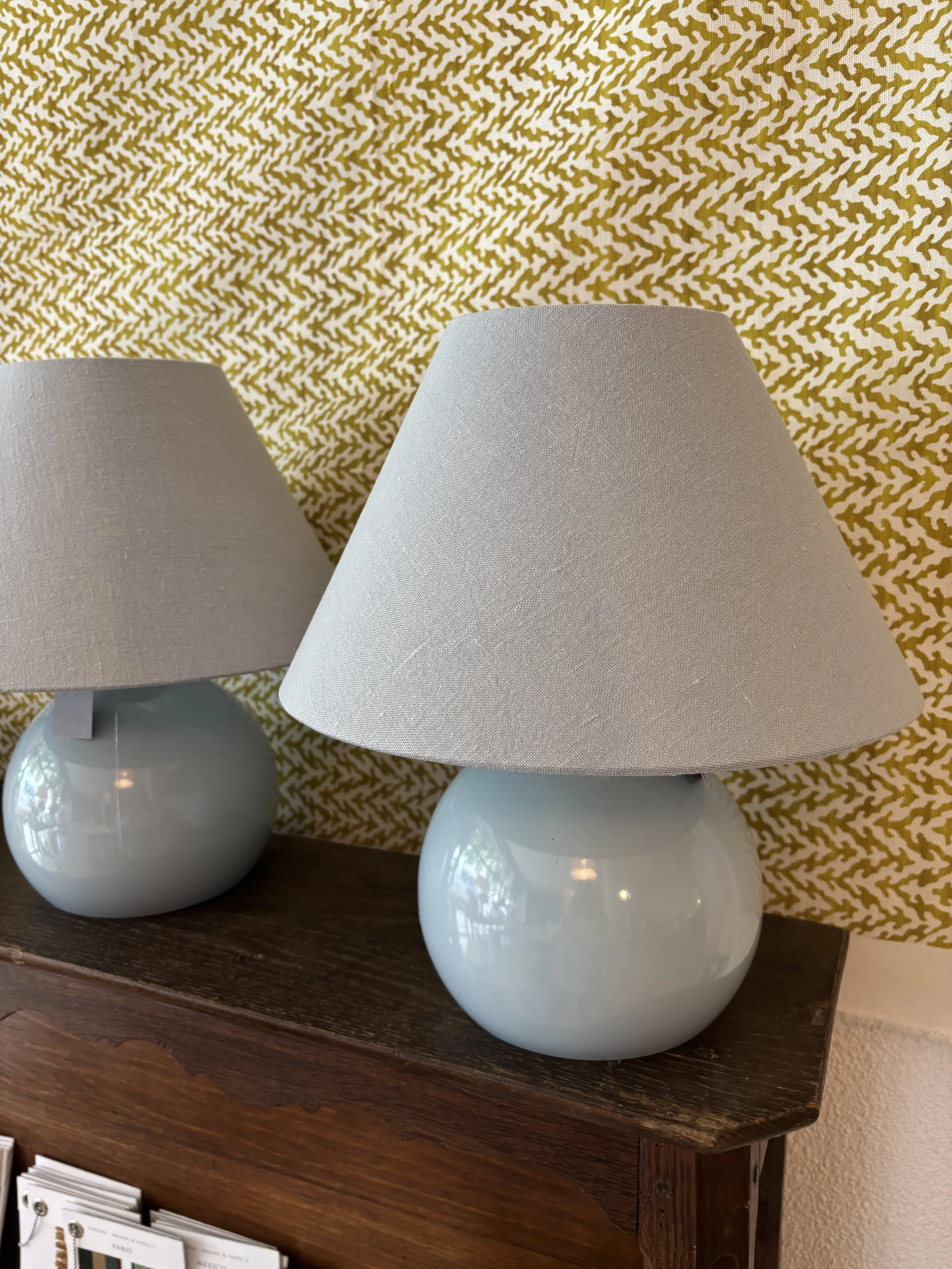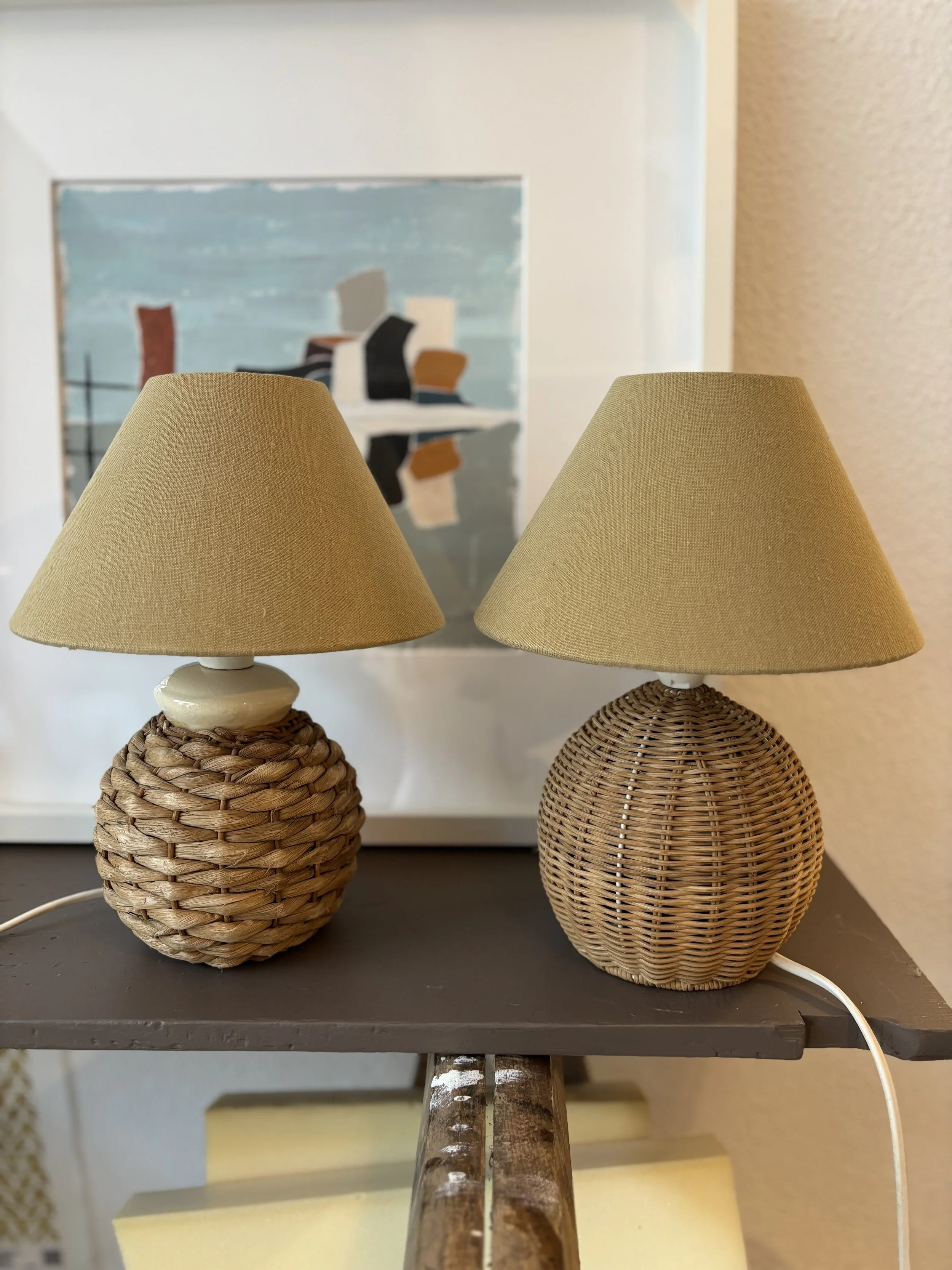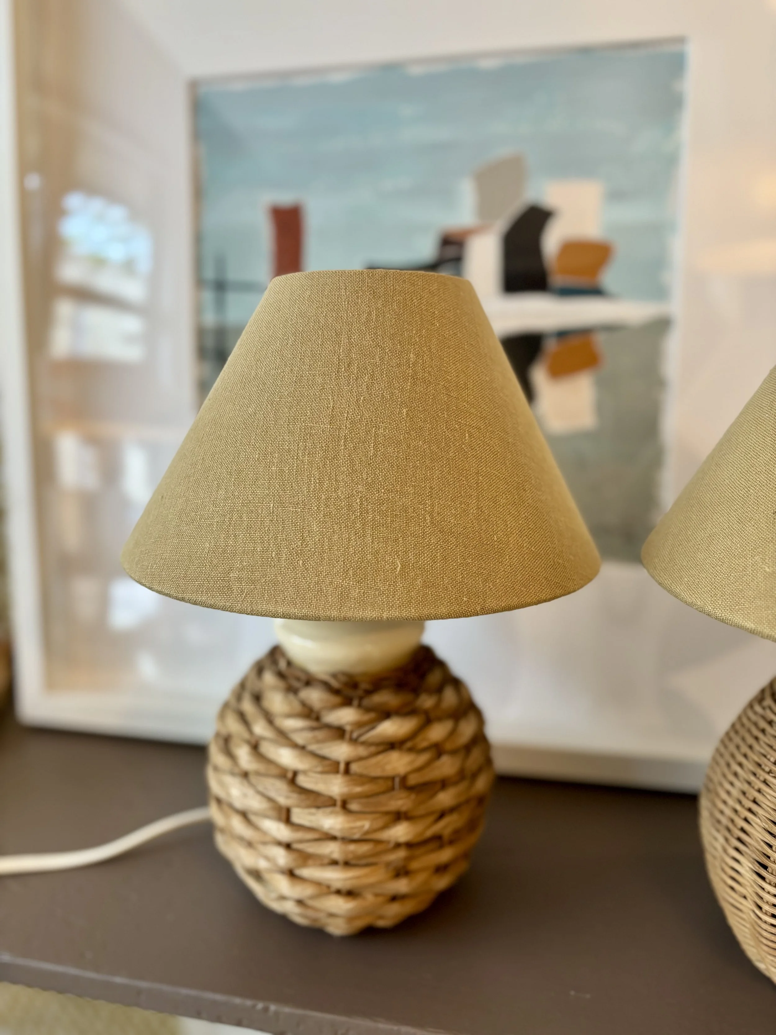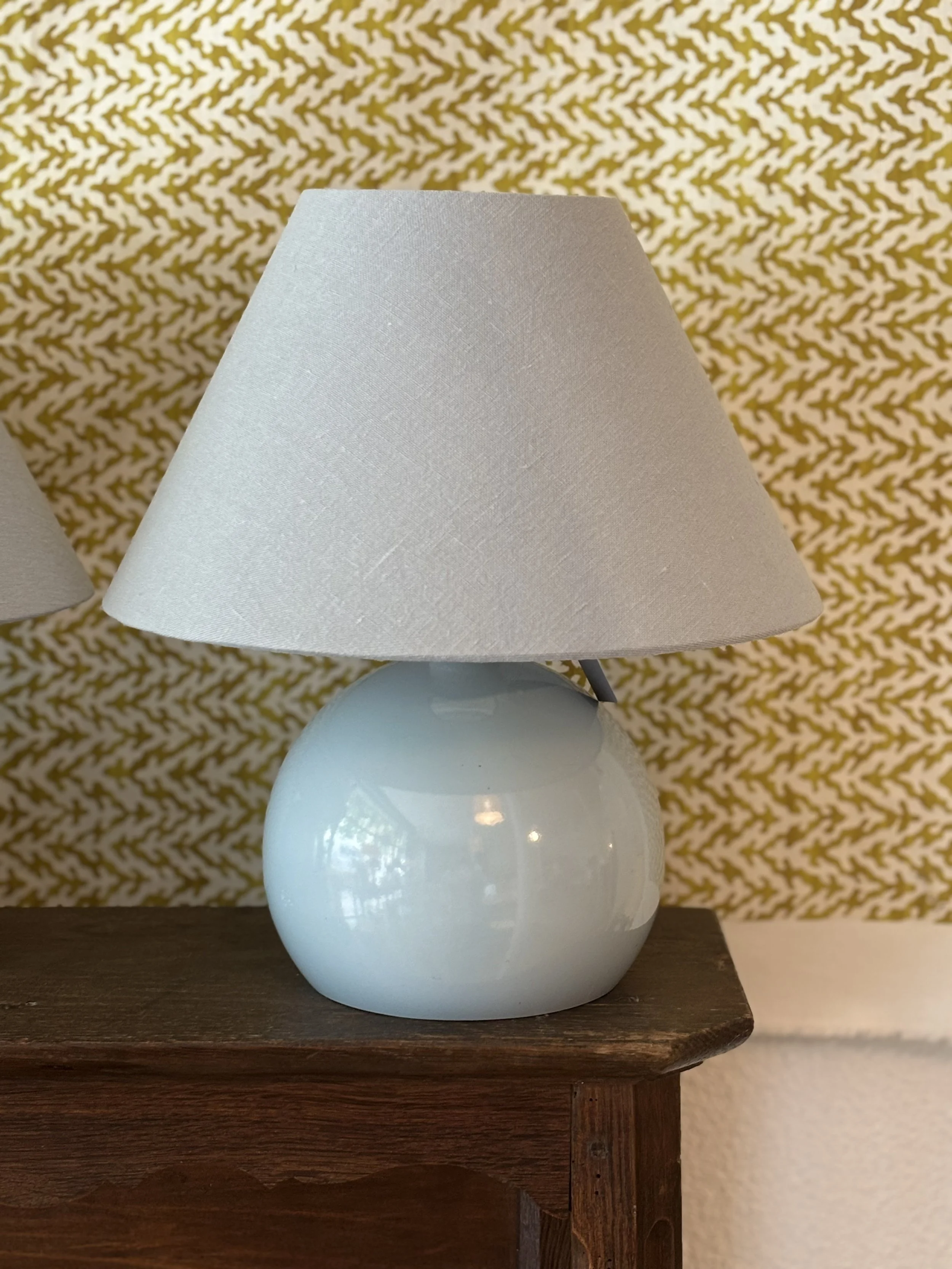 CW STUDIO INT SHOP Paire de lampes à poser, bleu layette 360,00 € Lampes vintage en rotin et fibre végétales 204,00 € Abat-jour en raphia teint à la main, bleu 170,00 € Carte cadeau pour un abat-jour sur mesure À partir de 100,00 €